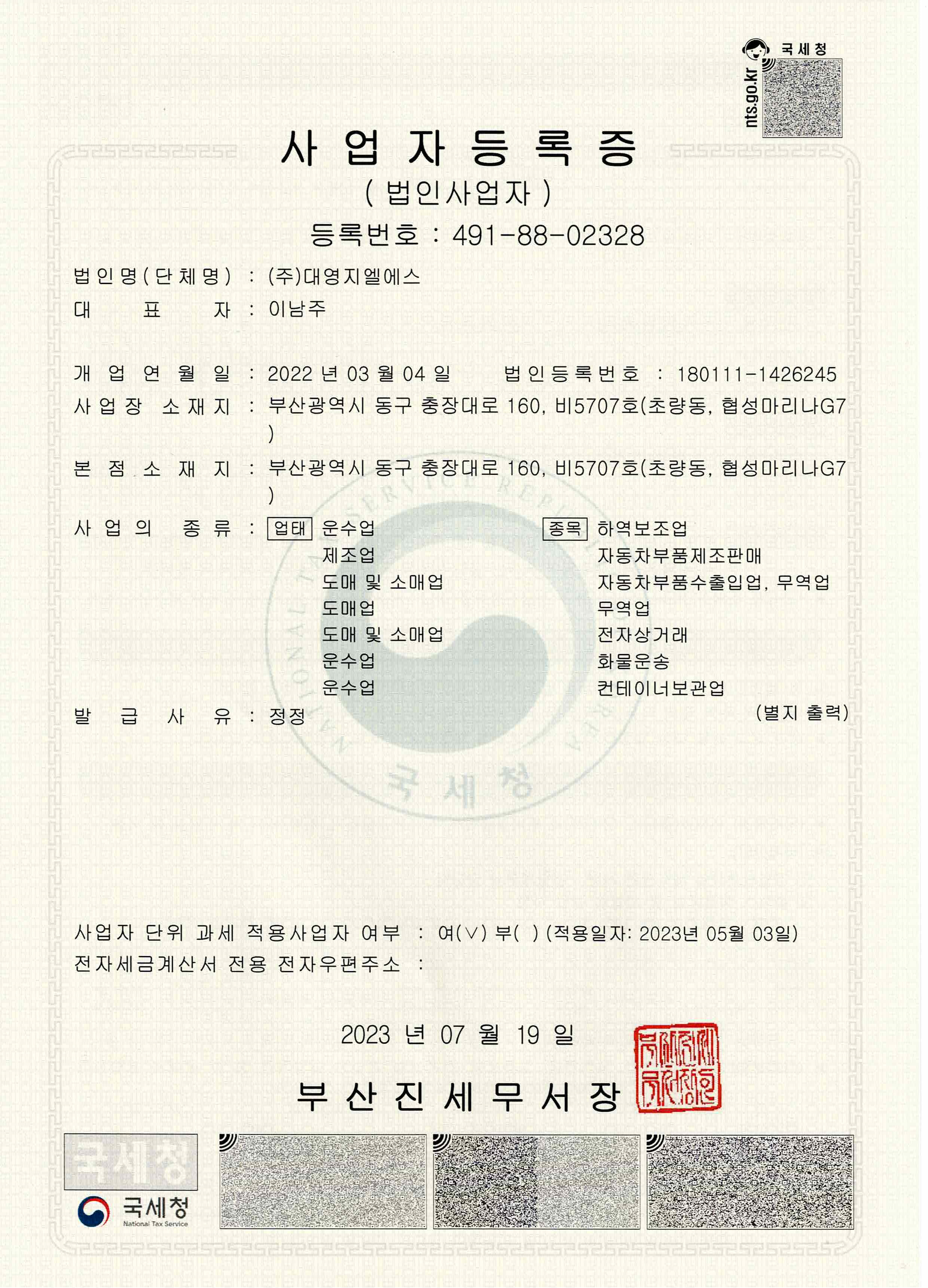 법인사업자등록증